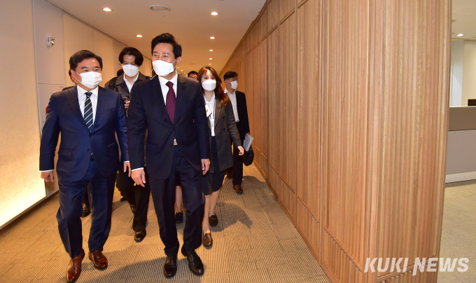 [쿠키뉴스] 조계원 기자 =오세훈 서울시장이 8일 서울시 간부직원들을 만나 정책과 인사에 “마구잡이로 칼을 휘두르지 않겠다”고 밝혔다. 오 시장의 당선에 따라 서울시 정책의 대전환과 공무원들의 대규모 교체 우려가 나오는 상황에서 급격하게 정책이나 인사를 밀어붙이지 않겠다는 발언이다.
