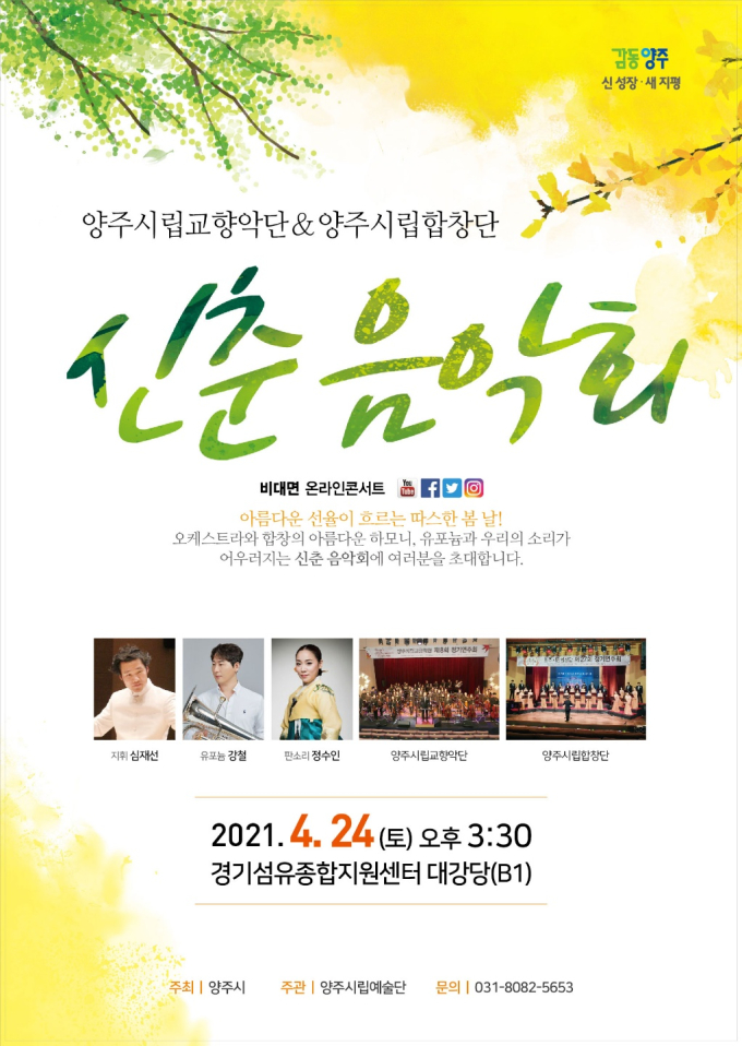 신춘음악회 영상은 오는 28일부터 양주시립예술단 공식 유튜브 채널에서 시청할 수 있다.