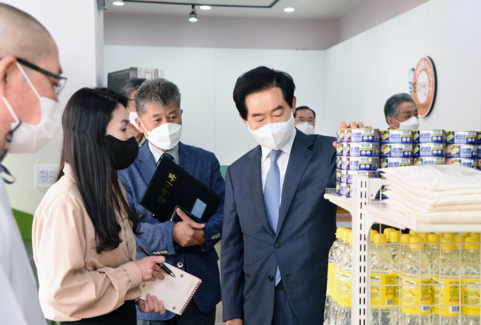 [의정부=쿠키뉴스 윤형기 기자] 안병용 의정부시장이 26일 통합 개관예정인 의정부 푸드뱅크마켓을 방문해 관계자들을 격려했다.