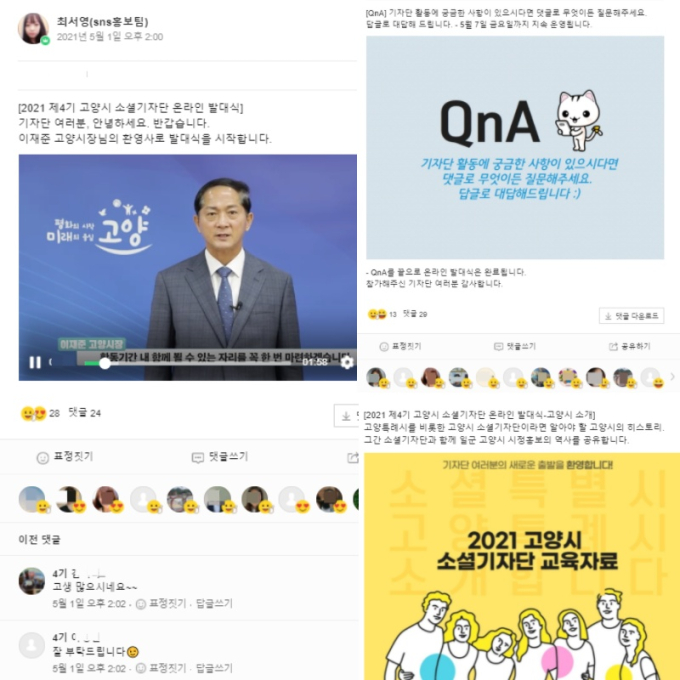 한편 고양시 소셜기자단은 2017년부터 지금까지 275명이 활동했다. 역대 고양시 소셜기자단의 생생한 기사는 고양시 공식 네이버 블로그에서 확인할 수 있다. 또한 고양시는 약 47만 명의 SNS 팔로워 수를 보유하고 대한민국 인터넷소통분야 대상을 꾸준히 수상하는 등 SNS를 활용한 시민소통의 모범사례로 평가받고 있다.