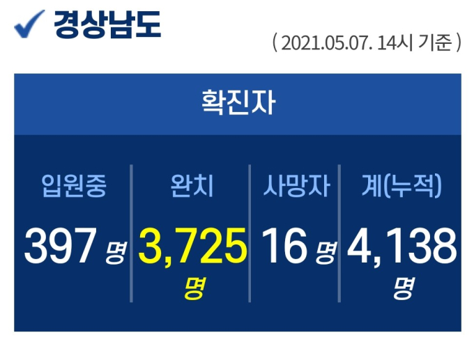 김해 확진자 2명(경남 4121, 4122번)은 도내 확진자의 가족이며, 경남 4121, 4122번은 경남 3868번의 가족이다.