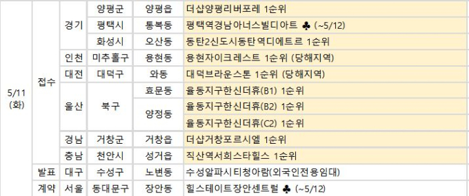 [쿠키뉴스] 조계원 기자 = 5월 둘째 주 경기 양평군 양평읍 ‘더샵양평리버포레’, 경기 화성시 오산동 ‘동탄2신도시동탄역디에트르’ 등이 분양에 들어간다.