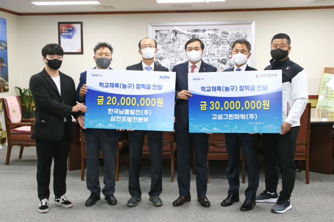 지난해 10월 학교체육 장학사업 추진을 위한 업무협약 체결 후 2년째 장학사업을 추진해 오고 있으며, 올해도 고성그린파워(주)가 삼천포여고에 3000만원, 한국남동발전(주) 삼천포본부가 삼천포여중에 2000만원을 각각 지원했다.