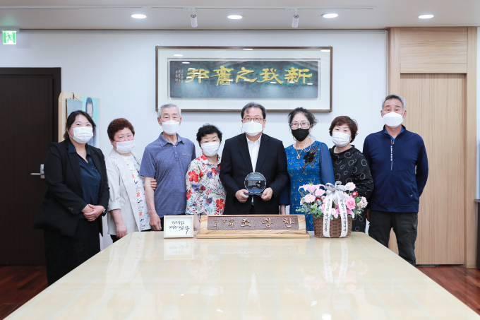 [남양주=쿠키뉴스 윤형기 기자] 경기도 남양주시는 조광한 시장이 금곡 24통 이경배 통장 등 금곡동 군장마을 주민 7명으로부터 문화공원 조성에 기여한 공로로 감사패를 받았다고 3일 밝혔다.