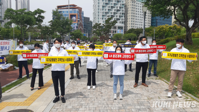 이들은 "현재 불거지고 있는 LH의 일부 임직원 부동산 투기 의혹에 대해 정부는 고강도로 혁신하겠다고 밝혔던 정부가 불과 몇십일만에 해체 수준의 분리를 단행하는 것이 근본적인 해결책"이냐며 목소리를 높였다.