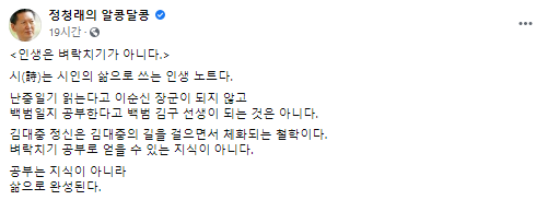 정 의원은 전날 SNS에 이 같은 제목으로 "김대중 정신은 김대중의 길을 걸으면서 체화되는 철학이다. 벼락치기 공부로 얻을 수 있는 지식이 아니다"라면서 "공부는 지식이 아니라 삶으로 완성된다"고 꼬집었다.