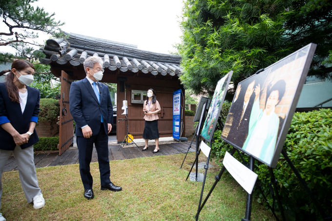 이 지사는 이날 오후 1시 30분부터 유산관에서부터 역사관, 통일관에 이르기까지 기념관에 마련된 전시공간 곳곳을 둘러봤다.
