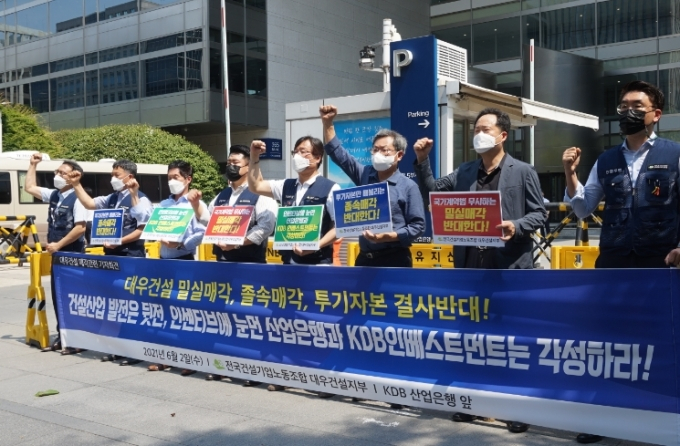 대우건설 투기자본 매각 반대 시위 /사진=건설노조◇대우건설 매각 후 부실화 되면 책임은