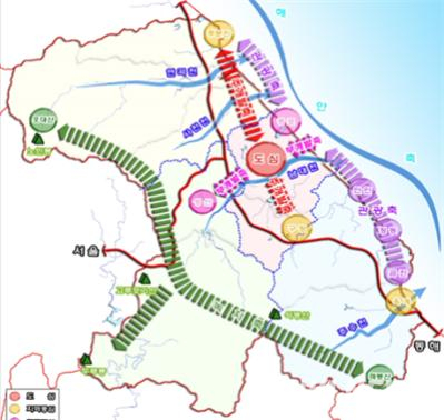 KTX강릉선 개통, 동해북부선(강릉~제진간), 남강릉IC 내률 ITS Hvb 산업·물류 거점도시, 옥계항(국가어항) 연안 수송 활성화 등 변화된 도시 여건과 남부 지역 균형 발전 도모 등을 구려해 도시공간구조를 1심(강릉도시권) 3지역 중심(주문진, 옥계, 구정), 2지구 중심(성산, 경포)으로 압축하고 시 인접시·군 특성을 고려해 상생 발전할 수 있는 주요 발전축을 설정했다.