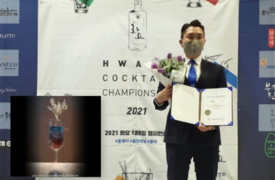 박성원 학생은 칵테일 실습수업을 통해 배운 전공 지식을 바탕으로 이번 대회에 참가했으며, 화요 25도와 41도를 사용해 창작칵테일 ‘몽효’를 만들어 우수한 평가를 받았다. 특히, 몽효의 꿈과 새벽 바다를 표현했으며, 몽롱하고 흐리멍텅한 마음을 깰 수 있도록 한다는 의미와 꿈속에서 본 새벽 바다의 풍경을 색으로 표현했다고 학교 측은 설명했다.