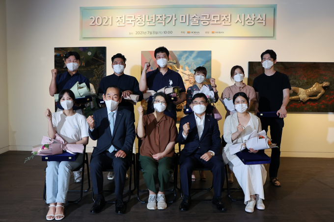 호반그룹은 8일 남도문화재단이 서울 종로구 인사아트센터에서 ‘2021 전국청년작가 미술공모전’ 시상식을 개최했다고 밝혔다. 이날 시상식에는 윤주봉 남도문화재단 이사장, 김미진 심사위원장(홍익대학교 미술대학원 교수), 수상 작가 등 10여 명이 참석했다.