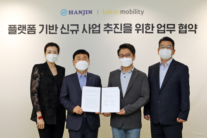 [쿠키뉴스] 송금종 기자 = 카카오모빌리티는 12일 한진과 플랫폼 기반 신규사업 추진 업무협약을 맺었다.