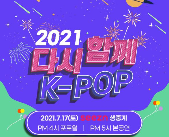[쿠키뉴스] 송금종 기자 = KT가 ‘2021 다시 함께, K-POP 콘서트’를 Seezn(시즌)과 올레tv에서 독점 생중계한다.