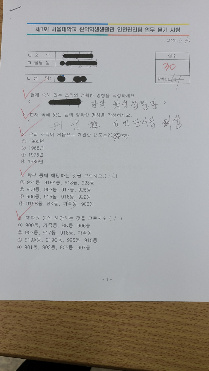 이날 2회차 시험도 치러졌다. 이번에는 속해 있는 조직의 명칭을 한자와 영어로 작성하라는 문제가 출제됐다. 서울대학교 관악학생생활관을 한자·영어로 쓰라는 문제였다. 기숙사 수용인원을 묻기도 했다.