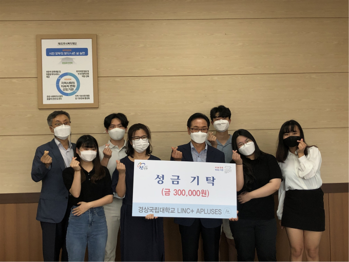 경상국립대학교(GNU·총장 권순기) 링크플러스(LINC+) 사업단(단장 강상수)이 지원하는 창업동아리 에이플러시스(회장 김지한, 산업시스템공학전공)가 지난 3일 진주시복지재단 회의실에서 실전 창업 운영수익금 30만원을 진주시복지재단(이사장 이성갑)에 기탁했다.