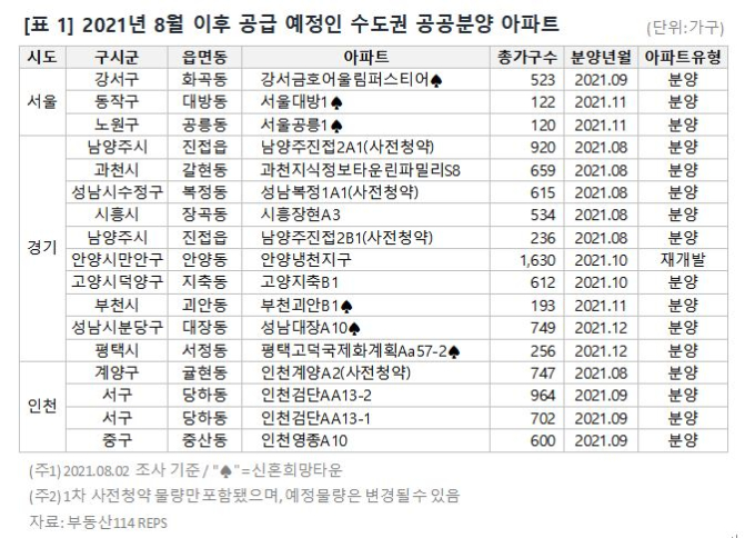부동산114는 공공분양 아파트는 분양가상한제를 적용 받아 주변 시세에 비해 저렴한 가격에 공급되는 장점이 있다고 평가했다. 입지가 좋은 과천, 성남 등을 비롯해 11월 서울에서 공급 예정인 신혼희망타운에서 치열한 청약경쟁이 벌어질 것으로 예상했다.