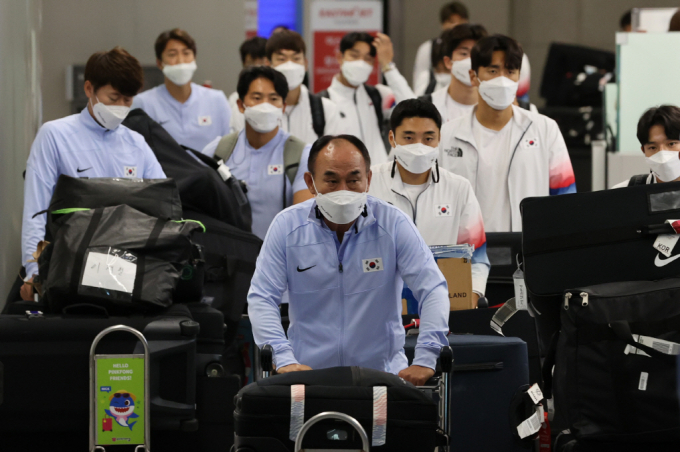 올림픽이 끝난 뒤 인천공항을 통해 귀국하는 김학범호. 연합뉴스◇ 최악으로 끝난 축구와 야구