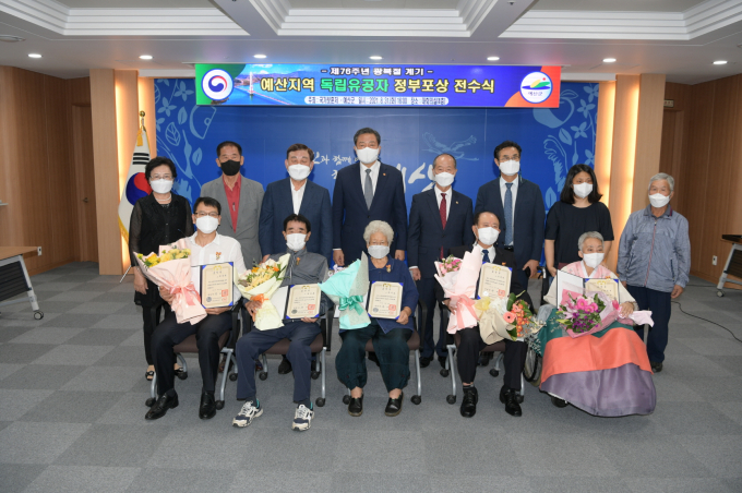 [예산=쿠키뉴스] 오명규 기자 = 국가보훈처에서도 인정한 충남 최초 3·1 만세운동 발상지 예산군(군수 황선봉)은 제76주년 광복절을 맞아 예산 출신 포상자 38명 중 유족 5명에 대한 정부포상 전수식을 지난달 31일 군청 대회의실에서 개최했다고 1일 밝혔다.