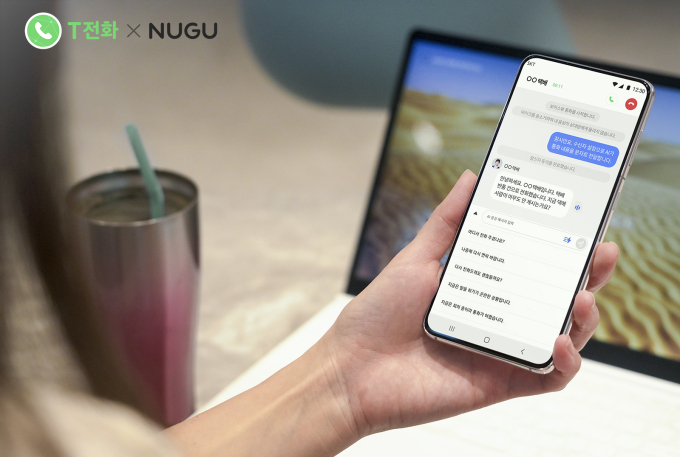 발신자는 텍스트를 누구(NUGU) 음성으로 들을 수 있다. 누구(NUGU) 음성은 T전화 설정에서 바꿀 수 있다.