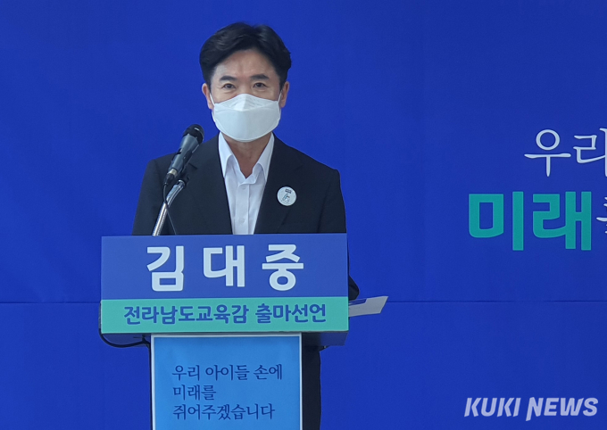 김대중 대표는 8일, 전남도청 앞 선거준비사무소에서 출마 기자회견을 열고 “우리의 시대적 과제인 ‘디지털 교육혁명과 더불어 함께하는 교육자치’를 해내겠다”고 밝혔다.