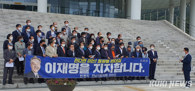 김종철 전 전남도의회 의장이 낭독한 지지 선언을 통해 전환기 대한민국에 절실히 요구되는 시대정신을 실천할 후보, 코로나 극복과 국정성과를 바탕으로 민생을 복원할 후보, 불합리한 관행과 기득권에 맞서 대한민국을 혁신할 후보로 이재명을 지지할 것을 선언했다.
