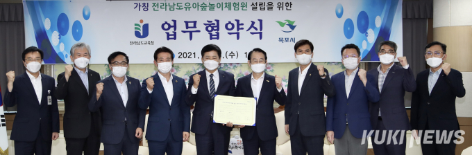 전남교육청과 목포시는 15일 전남교육청에서 장석웅 전남교육감과 김종식 목포시장, 전남도의회 의원 등이 참석한 가운데 ‘전라남도유아숲놀이체험원’ 설립‧운영을 위한 업무협약을 체결했다.
