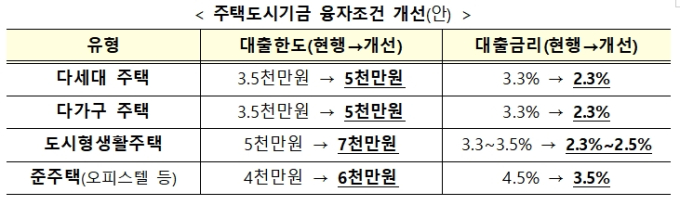 여기에 점점 대출 문턱이 높아지는 상황에서 주거형 오피스텔과 도시형생활주택에 대해서는 대출 규제도 완화해 주기로 했다. 오피스텔(4000만원→6000만원)과 도시형생활주택(5000만원→7000만원)의 주택도시기금 대출한도를 높이고, 금리를 최저 2.3%까지 낮추기로 했다. 정부는 이러한 단기주택 공급 방안이 도심내 집값과 전세난 안정에 기여할 것으로 기대하고 있다.