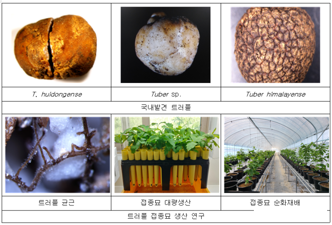 차세대염기서열분석법(NGS)을 활용해 국내 산림토양에서 서식하는 트러플 균주를 과학적 기법으로 찾아내고, 균 분리를 통해 자생수종 활용 접종묘 생산연구와 현장실증 재배시험을 할 방침이다.
