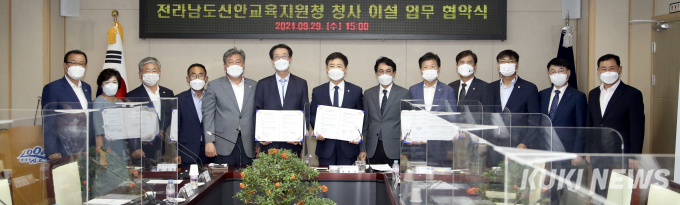전남교육청과 신안군은 이같은 내용을 골자로하는 ‘신안교육지원청 청사 이설을 위한 업무협약(MOU)’을 29일 신안군청에서 체결했다.