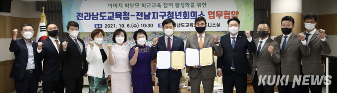 장석웅 교육감과 이상현 전남지구청년회의소 회장은 지난 6일 전남도교육청 비즈니스실에서 아버지학부모 학교교육 참여 활성화를 위한 업무협약을 체결했다.