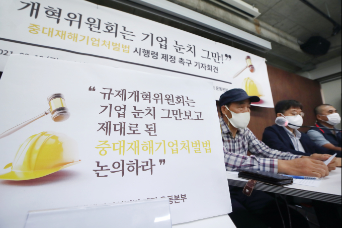 경영계뿐 아니라 노동계도 중대재해처벌법의 실효성에 대해 의문을 품고 있다. 시행령 제정까지 오면서 당초 법 제정 취지와 어긋나게 바뀌었고, 시행령대로라면 과거와 크게 달라질 게 없다면서 강도 높은 비판을 쏟아내고 있다.