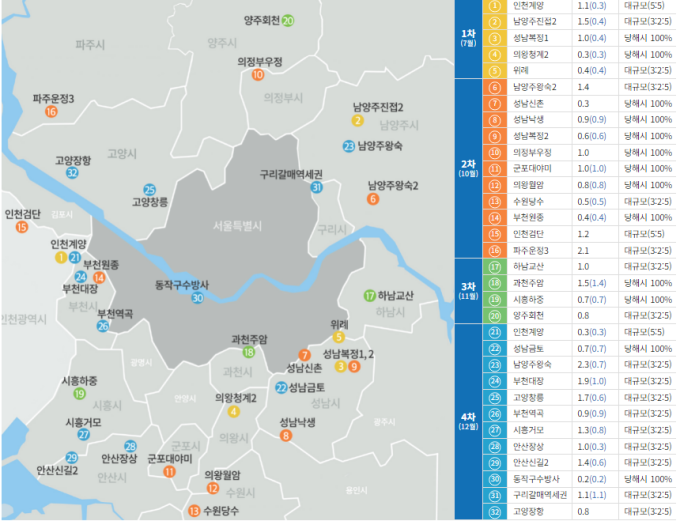 11개 지역에서 서울 거주민이 신청할 수 있는 곳은 어디일까요. 정답은 남양주왕숙2, 수원당수, 인천검단, 파주운정3 등 4곳 입니다. 모두 대규모 택지지구(66만㎡ 이상)로 개발이 추진되는 곳입니다. 대규모 택지지구는 주택건설지역이 서울·인천이면 당첨자를 서울·인천 거주민에서 50%, 수도권 거주민에서 50%씩 선발합니다. 주택건설지역이 경기도면 해당 주택건설지역 30%, 경기 20%, 수도권 50% 비율로 당첨자를 뽑습니다. 반대로 소규모 택지지구(66만㎡ 미만)에서는 건설지역 거주민 중에서 100% 당첨자를 선발하고 있습니다.