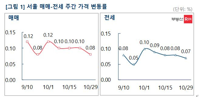 전세시장은 서울이 지난주 대비 0.01%p 낮은 0.07% 상승했고 신도시와 경기·인천은 각각 0.04%, 0.05% 올랐다.