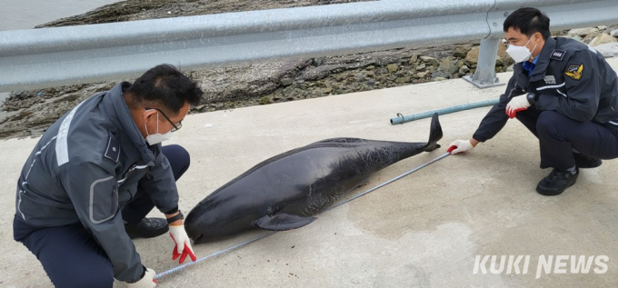 완도해경에 따르면 상괭이 사체는 길이 약 1.6m, 둘레 1.0m 규모로 성별은 암컷으로 추정되며 불법 포획 흔적이 없고, 부패가 상당히 진행돼 지자체에 인계했다.