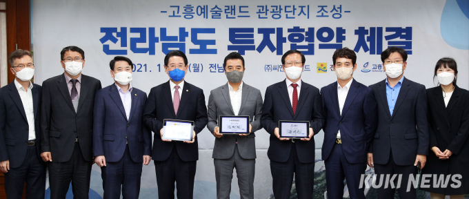 전남도는 8일 도청에서 김영록 도지사, 송귀근 고흥군수, 김현철 ㈜씨앤아일랜드 대표가 참석한 가운데 관광‧레저‧휴양을 아우르는 ‘고흥 예술랜드 관광단지’ 조성 투자협약을 했다.