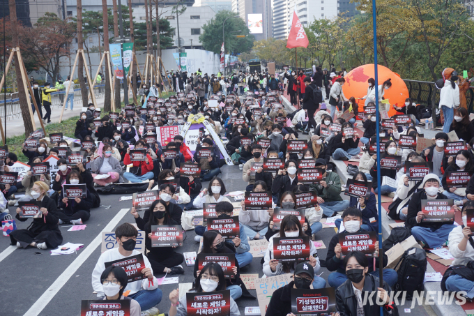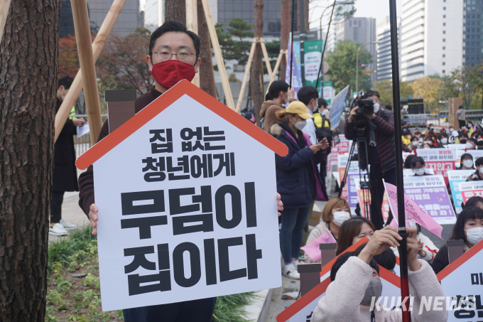 청년 주거난에 분노한 참여자. 사진=차종관 객원기자 참가자들이 각 의제가 담긴 피켓을 들고 집회에 참여하고 있다. 사진=차종관 객원기자 행사 참여자가 무대에서 발언하고 있다. 사진=차종관 객원기자 이날 의제는 다양했다. △청년고독사 △성범죄자 솜방망이 처벌 △기업만을 위한 기후정책 △비정규직만 양산하는 일자리 정책 △부동산투기로 돈 버는 세상 △광범위한 청소년 혐오 △사죄없는 과거사 문제 △교육정책에 경제논리로 접근하는 교육부를 대상으로 다양한 청년이 목소리를 높였다.