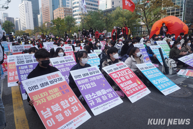 집회에 참여한 한아영 역사·시사 연합사진 동아리 ‘찰칵’ 회장은 “대선을 앞두고 청년들의 목소리를 내는 게 좋겠다고 생각해 참여했다”며 “청년이 목소리를 내지 않고 가만히 집에만 머물러 있다면 우리 목소리를 알아주는 사람은 없을 것이다. 우리가 모여서 목소리를 내야지 정치권이 응답해주기 위해 청년의 자주성이 중요하다”고 말했다. 경기평화나비 소속 한 대학생은 “청년들을 위한 정책이 아주 적다는 생각이 많이 드는데 이번 대선정국에서 이러한 의제들이 전혀 다뤄지지 않고 있다”고 말했다.