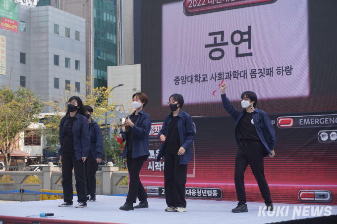 중앙대 사회대 몸짓패 ‘하랑’이 공연을 하고 있다. 사진=차종관 객원기자