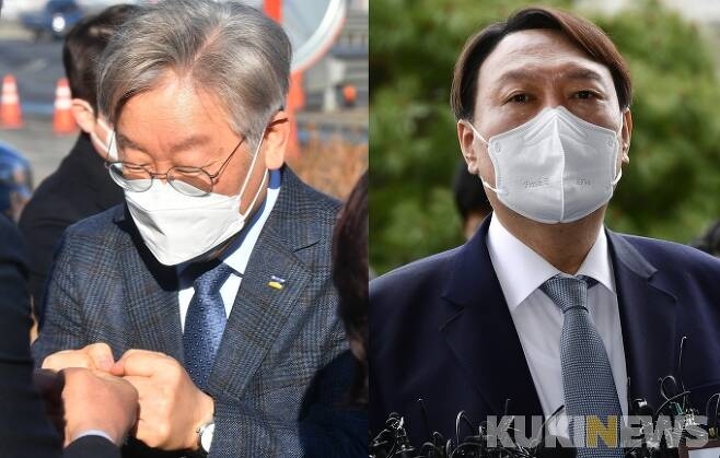 한국사회여론연구소(KSOI)가 TBS 의뢰로 지난 12일부터 이틀간 전국 만 18세 이상 1009명에 조사한 결과 양자 가상대결에서는 국민의힘 윤석열 대선 후보가 50.2%로 더불어민주당 이재명 대선 후보(36.0)를 14.2%포인트 앞선 것으로 15일 발표됐다.