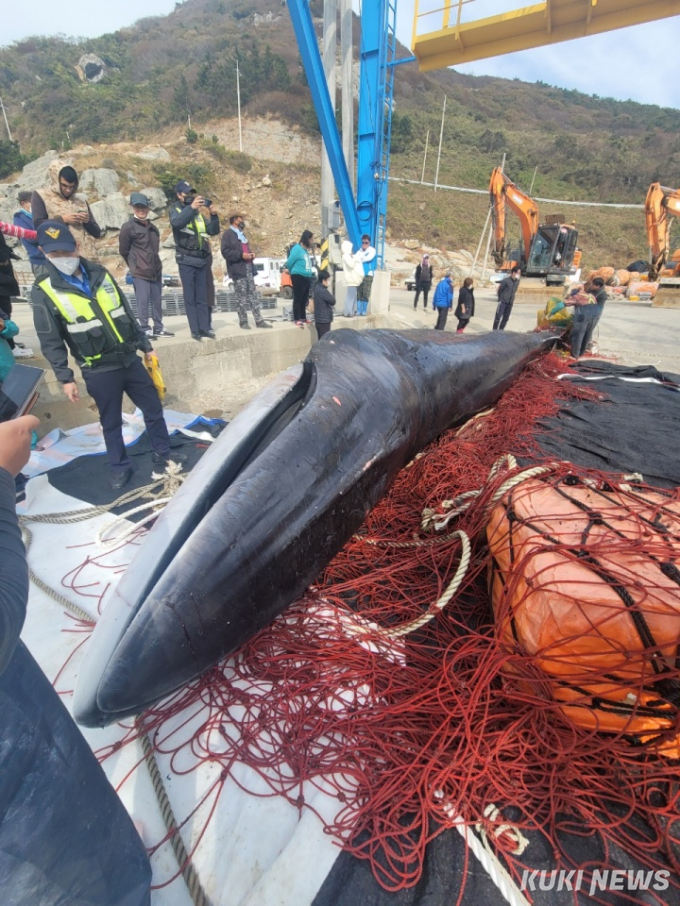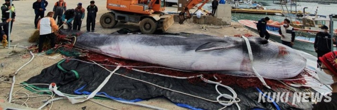 혼획된 고래는 참고래로 길이 약 11.2m, 둘레 3.8m, 무게 8.9톤 크기의 암컷으로 확인됐다.