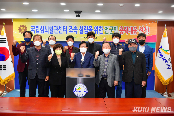 군은 18일 군청 2층 상황실에서 언론인, 사회단체장이 참석한 가운데, 유두석 장성군수 주재로 ‘국립심뇌혈관센터 조속 설립을 위한 장성군민 총력대응 선언문’을 발표했다.