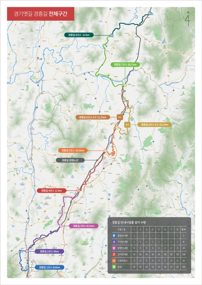 이번에 개통한 경흥길은 의정부와 포천을 잇는 8개 구간(89.2km)으로, 이 중 의정부시 관내에는 1구간(8.6km)과 2구간(9km)이 위치하고 있다. 2개 구간의 지명은 시 지명위원회 심의를 통해 사패산길과 천보산길로 각각 선정됐다.