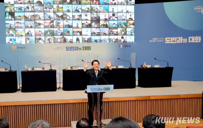 이날 도민과의 대화에는 신우철 완도군수, 이철‧신의준 전남도의원, 허궁희 완도군의회 의장과 박재선 부의장 등 46명이 현장 참석했다. 시민 150명은 온라인 화상회의로 참여했다.