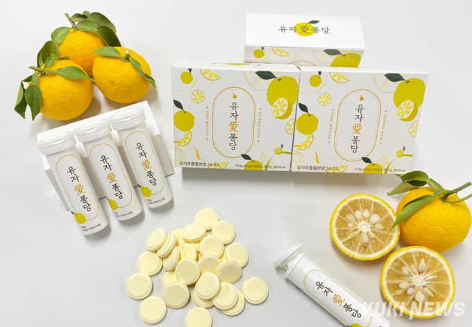 이번 시제품은 유자 분말을 알약 형태 크기로 만든 제품으로 찬물에 녹여 마시는 발포음료 유형이다. 특히 독립적인 소포장으로 돼 있어 소비자가 섭취량을 조절하기 쉽고, 휴대성이 아주 편리한 특징을 가지고 있다.