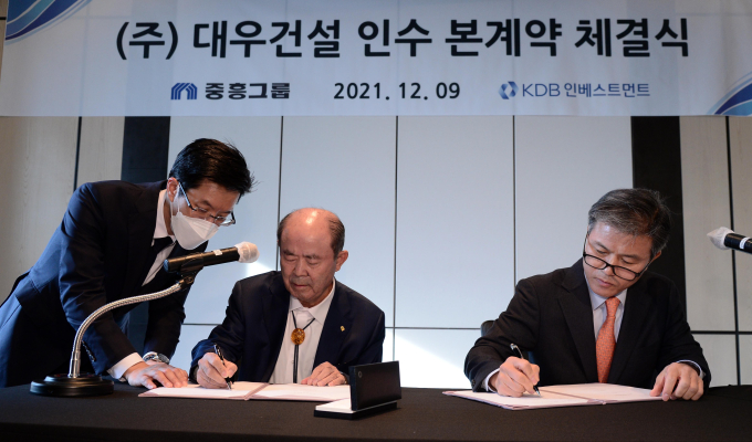 10일 중흥그룹에 따르면 전날 서울 종로구 포시즌스호텔에서 대우건설 지분 50.75%에 대한 주식매매계약(SPA)이 체결됐다. 이번 계약으로 중흥은 대우건설의 경영권을 확보하게 됐다. 시공능력평가(2021년) 17위 중흥토건, 40위 중흥건설을 비롯해 30여개 주택·건설·토목부문 계열사가 속한 중흥그룹과 5위 대우건설이 결합할 경우 2위로 단숨에 도약한다.