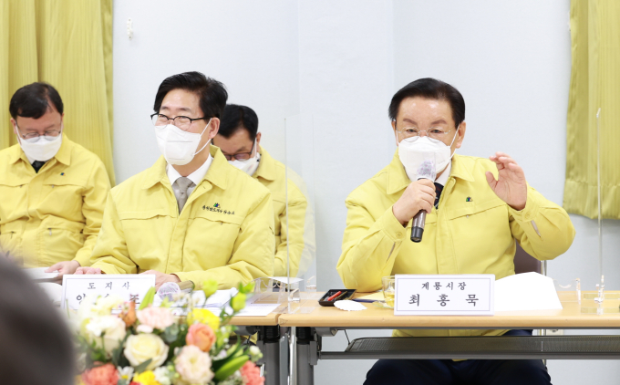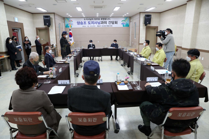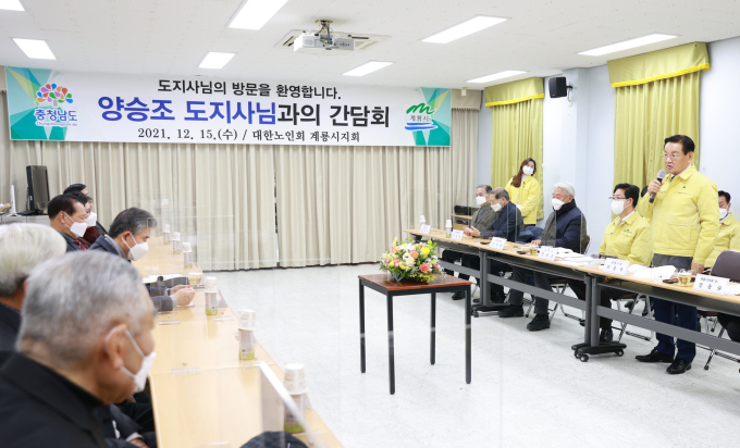 양승조 충남도지사가 15일 민선7기 4년차 방문으로 계룡시를 찾아 노인·보훈단체장 등과 소통의 시간을 가졌다.