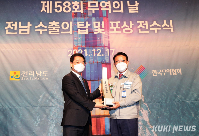 전남지역 수출탑 수상기업은 총 30개사다. 대한조선㈜이 6억 불 수출탑을 수상한 것을 비롯해 ㈜시그넷이브이가 5000만 불, 에이치에이엠㈜‧㈜케이에스‧㈜백터네이트코리아가 3000만 불, 어업회사법인 케이푸드㈜‧㈜마이벨로가 2000만 불, ㈜삼진지에프‧㈜와이제이씨‧매일식품㈜‧아이씨케미칼‧해송식품 ㈜ 어업회사법인이 1000만 불을 수상했다.