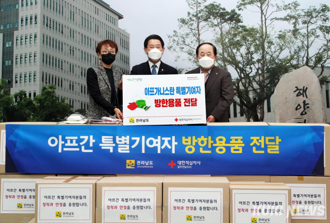 이날 전달식에는 김영록 전남도지사, 유복렬 아프간 정부합동지원단 총괄반장, 허정 대한적십자사 광주전남지사회장이 참석했다.