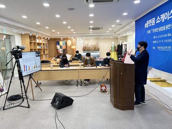 한국실크연구원 사업책임자의 사업 소개를 시작으로 지역 e플랫폼 전문기업인 JHR SOFT(대표 정종헌)의 e플랫폼 세부설명이 이어졌으며, 특히 '온라인 플랫폼을 활용한 마케팅 전략'이라는 주제로 경상국립대 심리학과 부수현 교수의 기조 강연을 통해 향후 플랫폼을 활용한 지역 전통산업의 플랫폼 활용 및 온라인 공간의 확장에 대한 방안이 제시됐다.