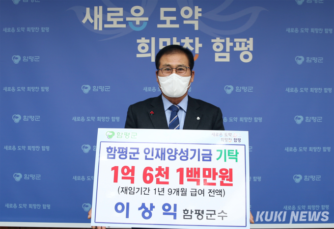 함평군은 지난 20일 이상익 군수가 1년 9개월 재임기간 급여 1억6100만 원 전액을 함평군 인재양성장학금으로 기부했다고 밝혔다.